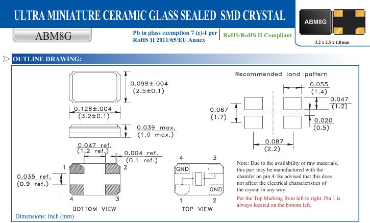 | ABM8G-12.000MHZ-4Y-T3 | Abracon LLC | ABM8G | MHz Crystal | 12MHz | 4-SMD, No Lead | 0.126" L x 0.098" W (3.20mm x 2.50mm) |