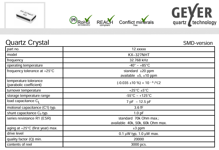 KX-327NHT晶振的卓越,首先體現(xiàn)在其精準(zhǔn)到毫米的技術(shù)參數(shù)上.3.2×1.5×0.75毫米的微型封裝,搭配2焊盤引腳布局,既節(jié)省了電子設(shè)備的內(nèi)部空間,又保證了安裝的穩(wěn)定性,完美適配現(xiàn)代電子設(shè)備小型化的發(fā)展趨勢.32.768KHz石英晶振的固定頻率、12.5PF的電容值與20PP的頻率偏差,讓它能穩(wěn)定產(chǎn)生精準(zhǔn)電振蕩,為設(shè)備運(yùn)行提供“精準(zhǔn)時(shí)鐘”.