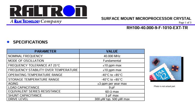 RH100-40.000-9-F-1010-EXT-TR玩具石英晶振,通信晶振,物聯(lián)網(wǎng)晶振